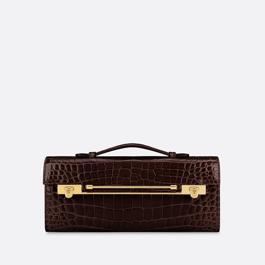 Inheriting the bold structured lines of the Raffles 1819 Handbag, the Raffles 1819 Clutch bears the iconic Raffles hardware and can be carried by its top handle. Wear it either as a casual day wallet or as a stylish evening clutch.